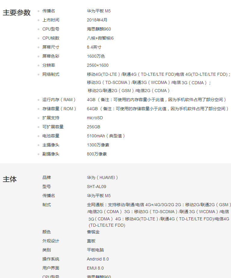 华为 M5 AL09B 8.4英寸平板电脑 4GB+64GB 全网通(香槟金)
