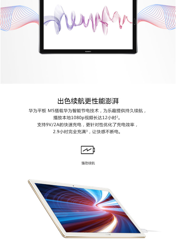 华为 M5 W09A 10.8英寸平板电脑 4GB+32GB WiFi版(香槟金)